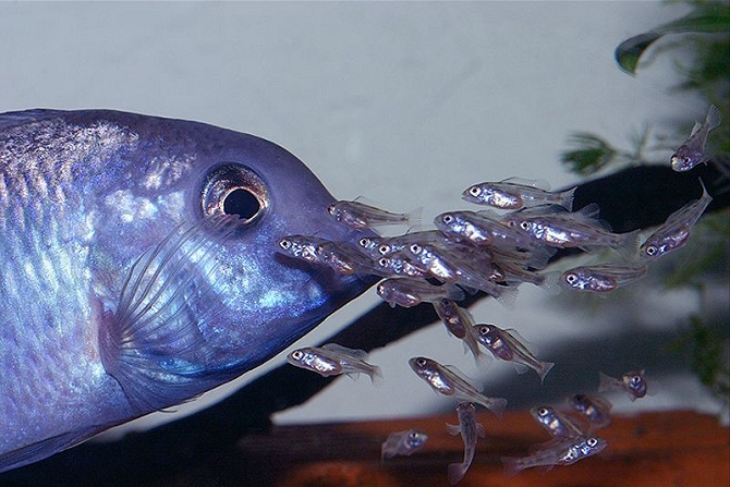 מכיוון שהדגים אינם יכולים לאכול כרגיל, חלק מהאקווריוםיסטים מנסים להוציא את הביצים ולבקוע אותן במיכל נפרד, אך זה לא תמיד אפשרי; הדגים עלולים פשוט לבלוע את הביצים.
