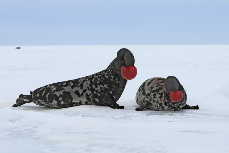 כלבי הים הללו מושכים את תשומת ליבם של הנבחרים שלהם באמצעות שיטה מעניינת מאוד. הם נושפים חלל אף אלסטי מנחיריהם, הדומה לבלון ורוד גדול.