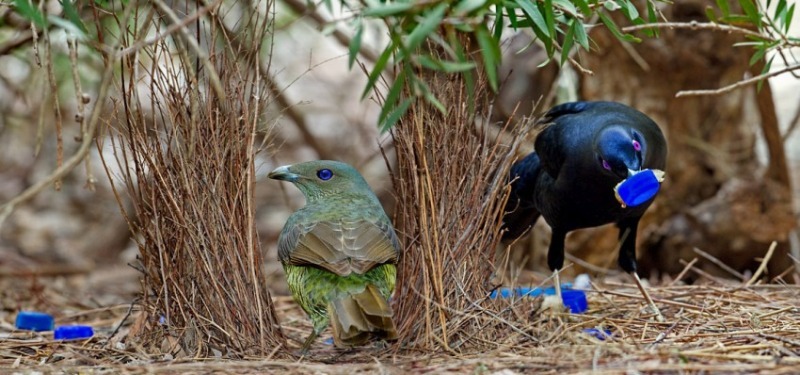 כאשר מתחילה עונת הרבייה, זכר הקן משקיע את ליבו ונשמתו בבניית הקן. הוא עשוי להשתמש בחומרים כגון ענפים, עלים, פרחים, פירות יער, קונכיות, פסולת שונות וחפצי בית אנושיים. ככל שהפריטים צבעוניים יותר, כך גדל הסיכוי למשוך את תשומת ליבה של בת זוגו הנבחרת.
