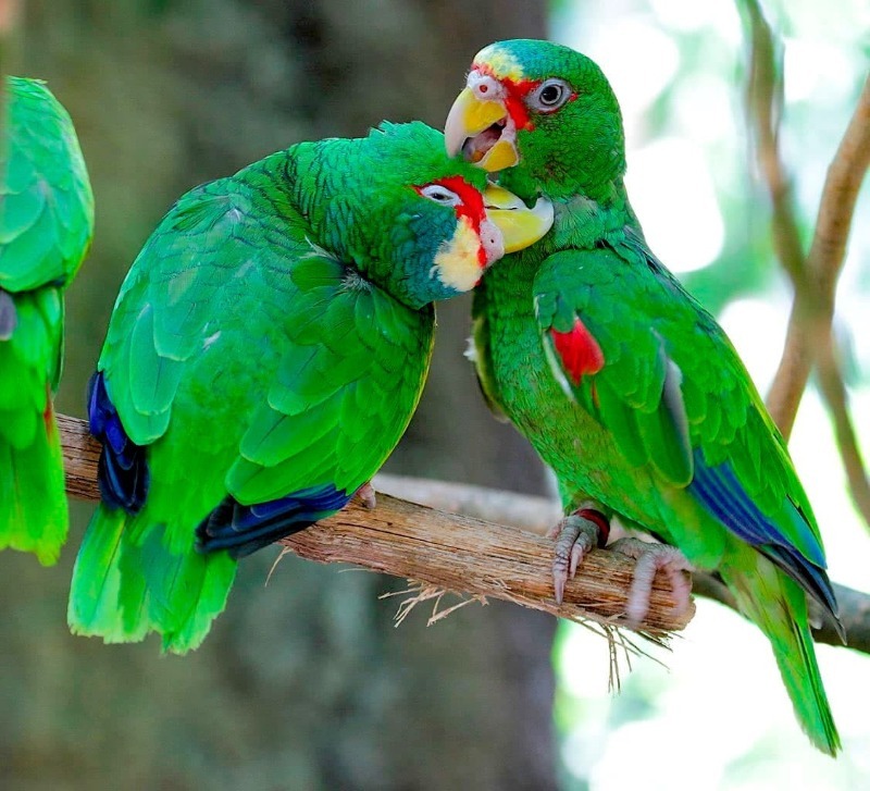 תוכי אמזונה לבני חזית רומנטיים למדי בביטויי החיבה שלהם. ציפורים אלה פשוט אוהבות לנשק את בני זוגן באמצעות לשונן. במהלך נשיקה, האמזונות מתעוררות כל כך עד שהן מקיאות את תוכן קיבתן לפיה של הנקבה. בעוד שפעולה כזו עשויה להיראות דוחה לבני אדם, עבור בן זוגו של אמזונה לבן חזית זהו ביטוי אמיתי של אהבה אמיתית ועמוקה.