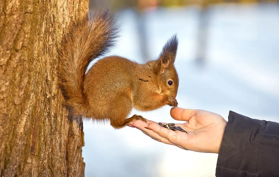 חטיפים לסנאים בפארק - מה להאכיל אותם בחורף