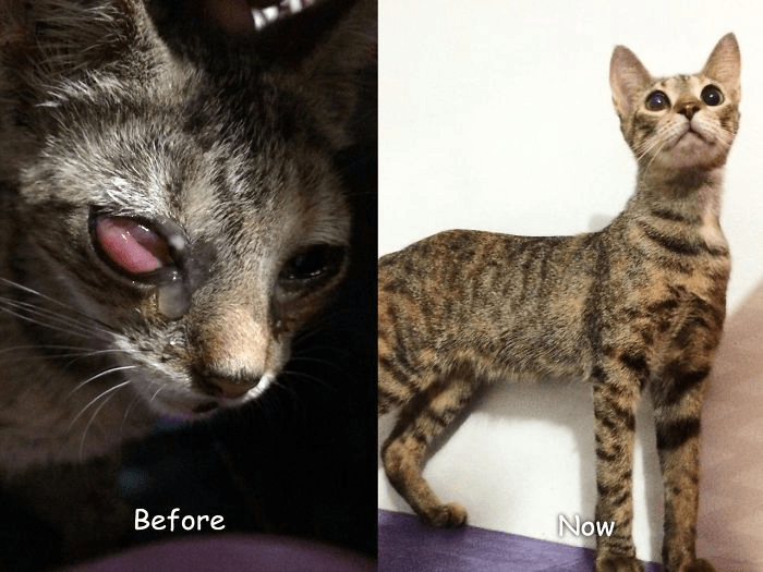 מתנדבים מצאו גור חתולים עם גידול מפלצתי ברחוב. עקב דלקת קשה, לא ניתן היה להציל את עינו של הגור. כעת, בעליו החדשים של הגור דואגים לבריאותו.