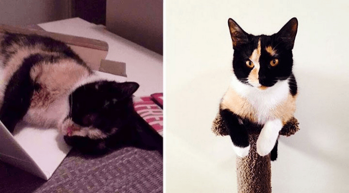 אלינור החתולה גוססת בפח אשפה, נפצעה קשה. היום היא מביאה אושר לבעליה החדשים.