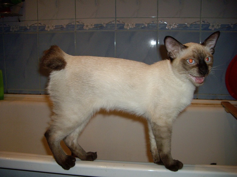 - זנבו של כל בעל חיים הוא ייחודי. על פי התקן, אורכו כאשר הוא מתוח לא יעלה על רבע מאורך הגוף. הוא מורכב מכמה חוליות, כמעט תמיד מכורבל, ולעתים קרובות מוסתר על ידי הפרווה שעל הגוף.