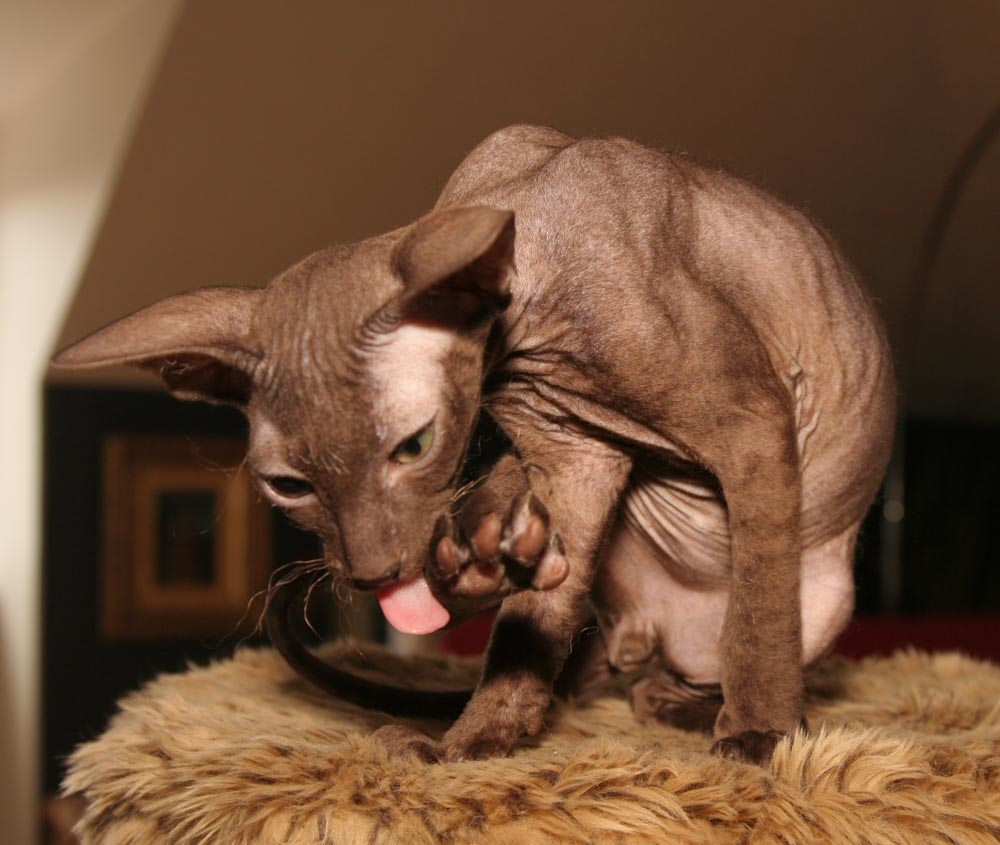 - בדיקות עיניים ואוזניים יומיות. מכיוון שלחתולים חסרי שיער עשויים להיות חסרי ריסים, עיניהם רגישות יותר לזיהום. יש לשטוף אותן במים חמים ומטלית רכה.