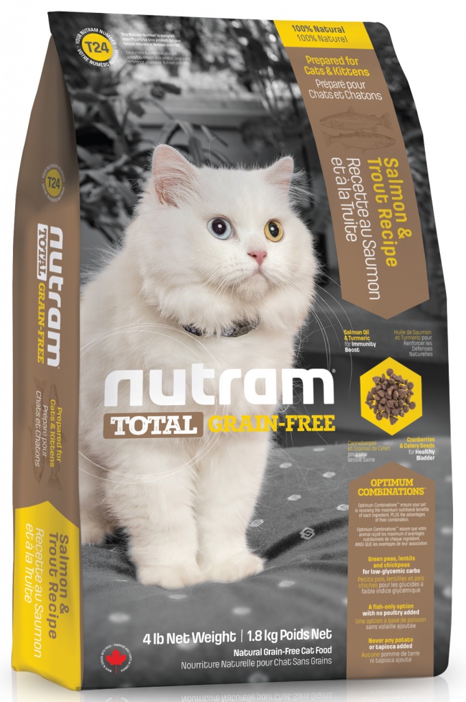 נוטראם ללא דגנים. אינו מכיל דגנים. קיבל ביקורות חיוביות מאוד מבעלי חתולים.