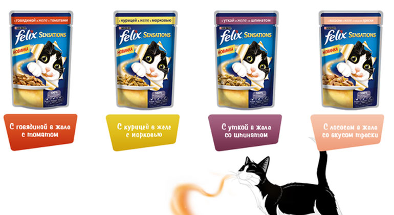 "פליקס". מוצר זה מכיל רכיבים טבעיים, מלחים מינרליים, ויטמינים ומינרלים חיוניים. עם זאת, וטרינרים ממליצים לתת אותו לחתולים רק מדי פעם.