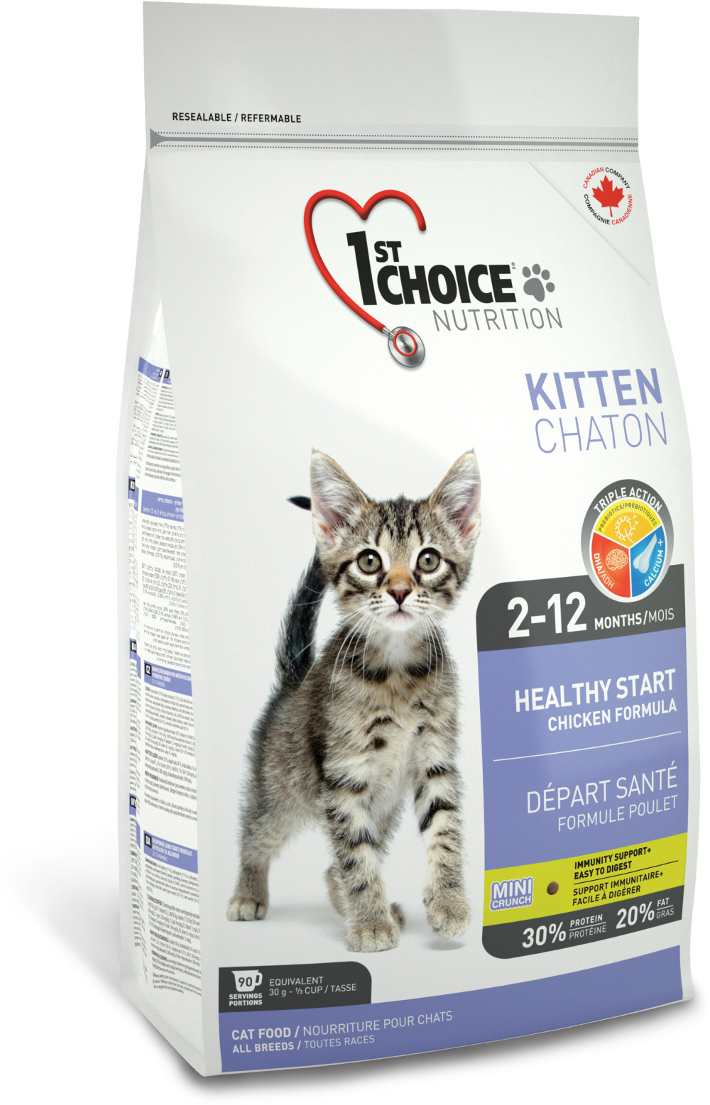 "1st Choice Kitten". למזון הזה יש רק חיסרון אחד: הוא לא תמיד זמין בחנויות לחיות מחמד. "1st Choice Kitten" מכיל את כל הוויטמינים והמינרלים החיוניים לבריאות גורי חתולים, שמן סלמון וכמות מקסימלית של מרכיבי בשר. הוא מיועד לגורים בגילאי חודשיים עד שנה.