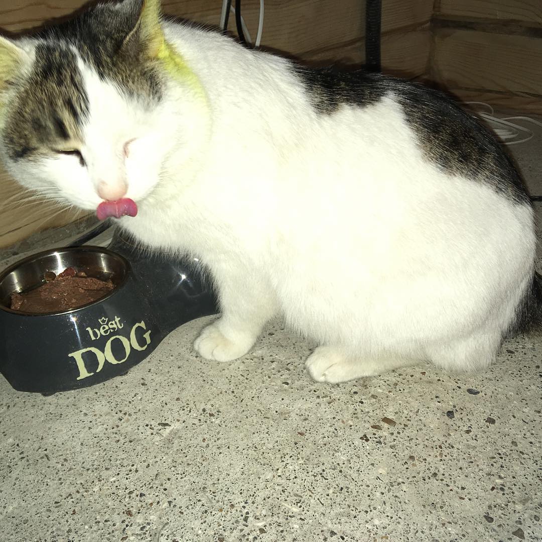 גם ברגובוי אוהב אוכל טוב, וגם הקערה שלו מיוחדת. עם חתול כזה, לא היית צריך כלב!