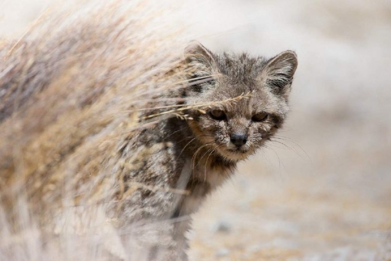 בעל חיים קטן זה, שאורכו עד 80 ס"מ, בעל פרווה פרועה ומשקלו עד 7 ק"ג, חי בערבות, יערות ואזורי ההרים של דרום אמריקה. המקומיים מכנים אותו חתול קש ויש להם רגשות מעורבים לגביו, מייחסים לו כוחות מיסטיים או הורגים אותו בגלל פרוותו היפה בצבע אפור-חום או צהבהב-חול.