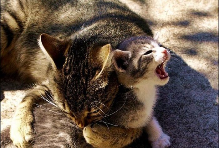 תפקידה של אם אינו רק ללדת ולהאכיל את גורי החתולים שלה, אלא גם לגדל אותם. חתולת אם אינה יוצאת דופן. חתולת אם יכולה לחנך את גורי החתולים שלה מילולית (גרגור, יללה ולחישה) ופיזית, כמו נשיכה או כפות רגליים. היא אינה מכירה דרכים אחרות. לרוב, חתולות אמהות נושכות את גורי החתולים שלהן: שיטה זו היא היעילה ביותר בטבע.