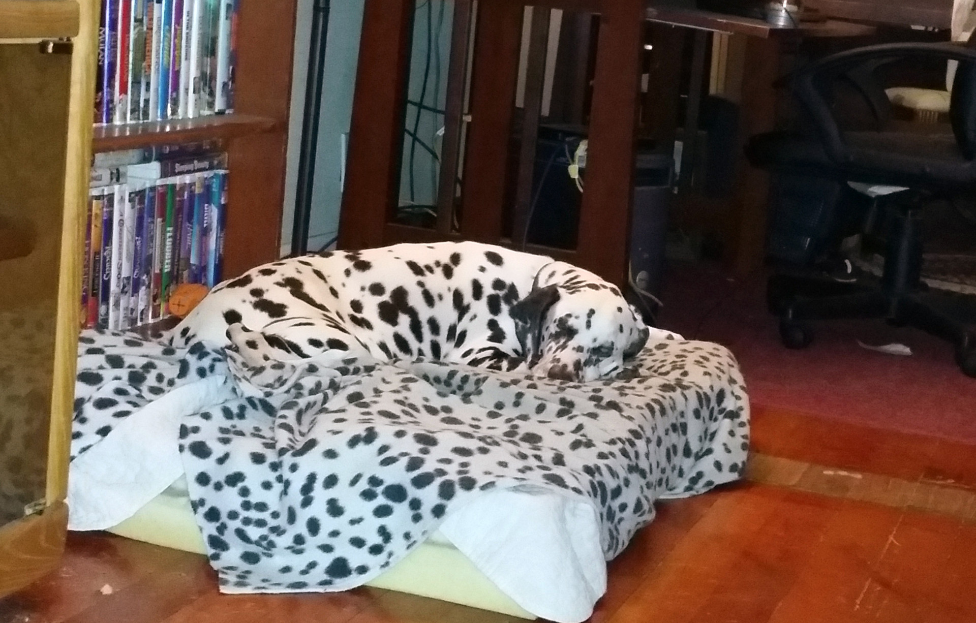 נראה שהשמיכה הזו נוצרה כדי לעזור לדלמטי להרגיש אחד עם העולם סביבו.