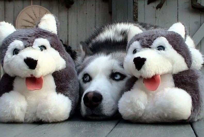 ההאסקי בחרה מקום חמים יותר לשחק מחבואים, ליד הצעצועים האהובים עליה.