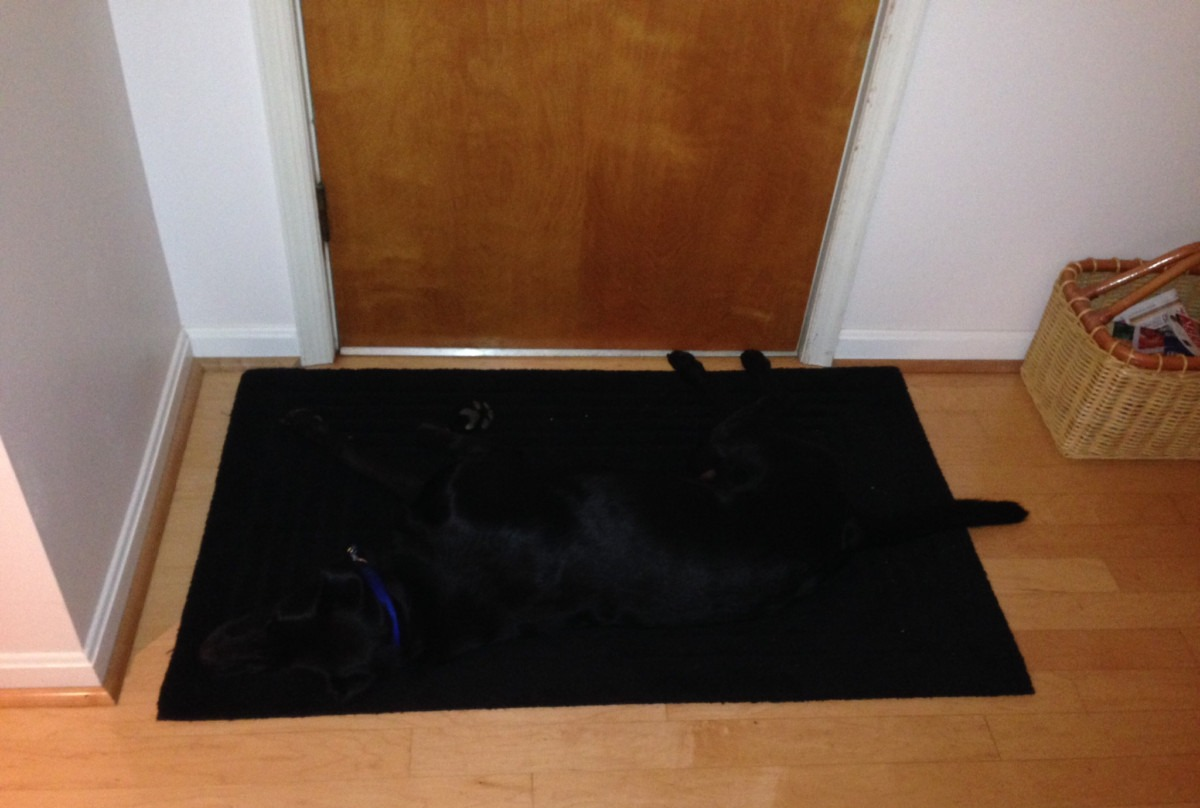 החתול הזה כנראה החליט שהשטיח אינו רק תמונות, אלא מקום לחתולים לשבת בו. יש לקוות שבעליו לא ידרוך עליו בטעות.