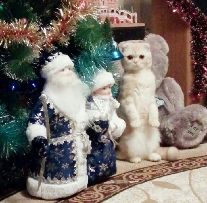 והחתול בעל האוזניים העקולות הזה החליט להפוך למתנה העיקרית מתחת לעץ.