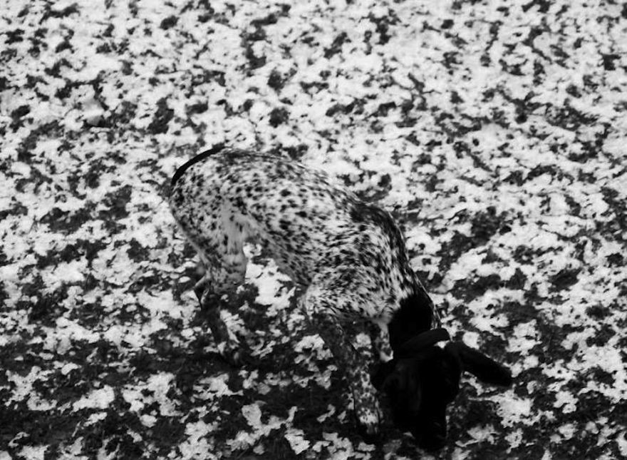 כלב שמצא את עצמו באלמנט הטבעי שלו - הסוואה מנוקדת מדהימה.