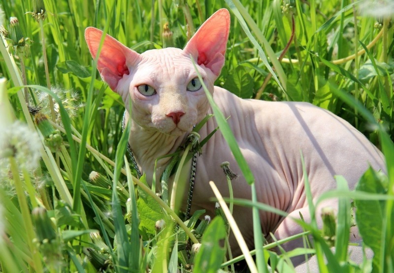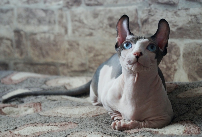 חתולים מגזע זה נבדלים על ידי חוסר הפרווה שלהם. הם מאופיינים בקפלים רבים על גופם. צבע העור משתנה מאוד, משחור לאדום לבנים. עם זאת, לבן ושמנת הם הנפוצים ביותר. עיניהם הן בעיקר כחולות, ירוקות וכתומות, ובעלות צורת לימון. אוזניהם ממוקמות גבוה וגדולות.