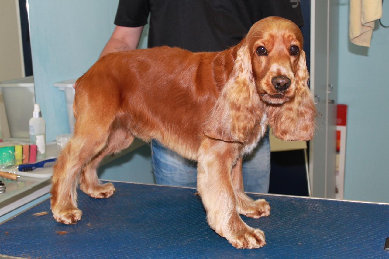 - השיער בגב אינו גזוז. הסרת שערות ההגנה תמנע מהפרווה להניח כראוי. כדי להשיג את האורך הרצוי, השיער בגב של קוקר מסורק מהפרווה התחתונה. רק אז שאר הפרווה תשכב באופן שווה וצמוד.