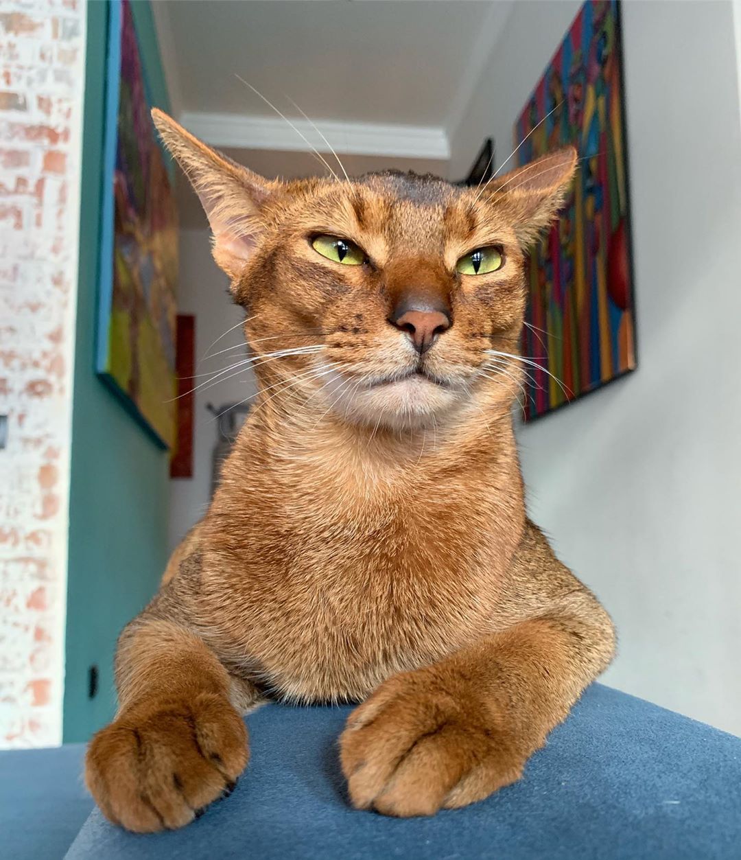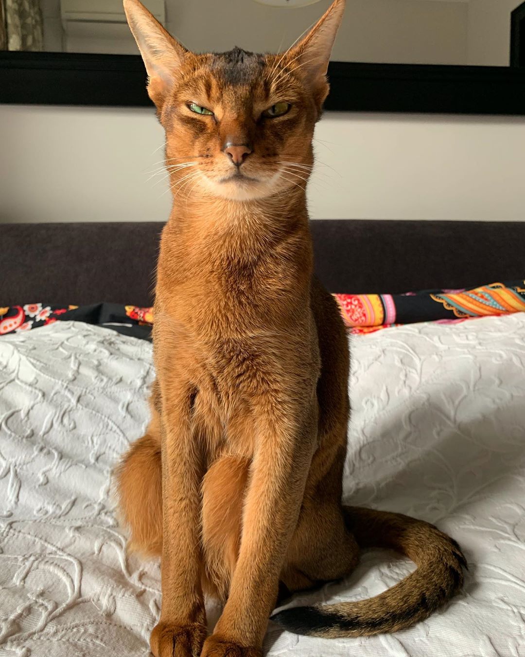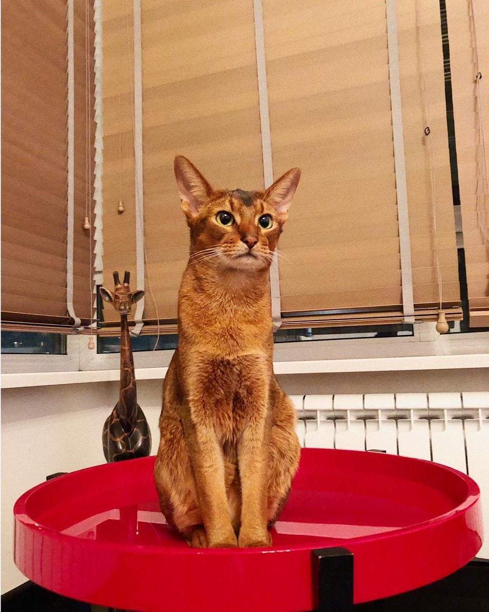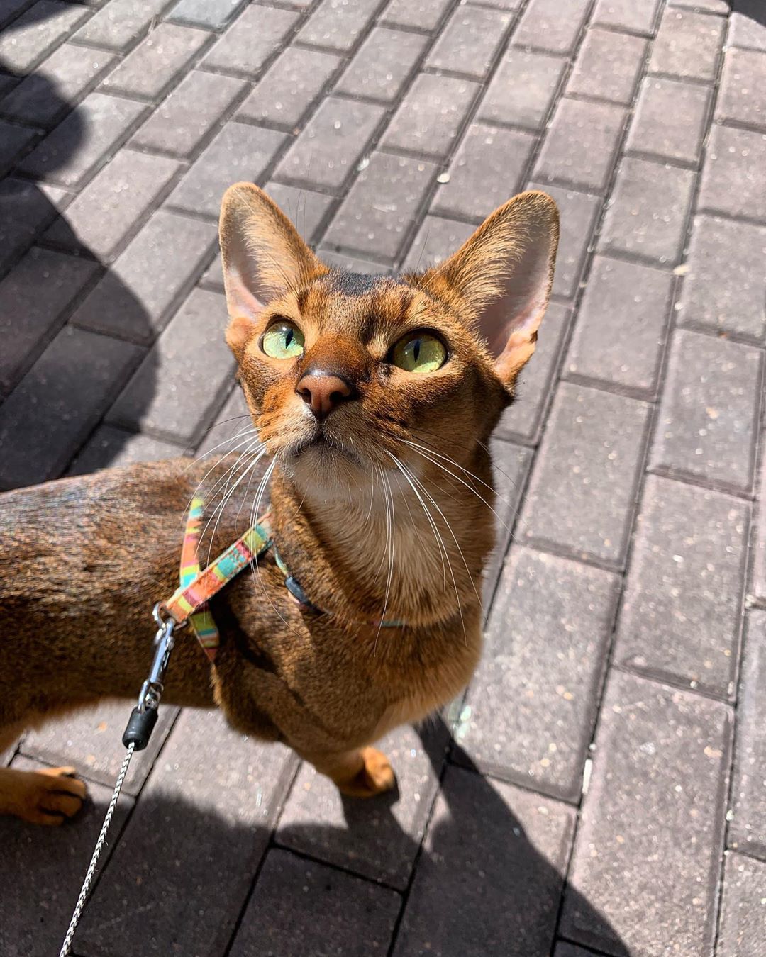 אביסיניאים הם תחליף נהדר לכלבים: הם אוהבים לטייל בחוץ, ובמזג אוויר חם, כמובן, וללקק את פניו של בעליהם האהוב. אמנם לא כל האבסיניאים כאלה, אבל סניה בהחלט כזו! ועם המבט המאיים הזה, היא תגן עליכם מפני בריונים!