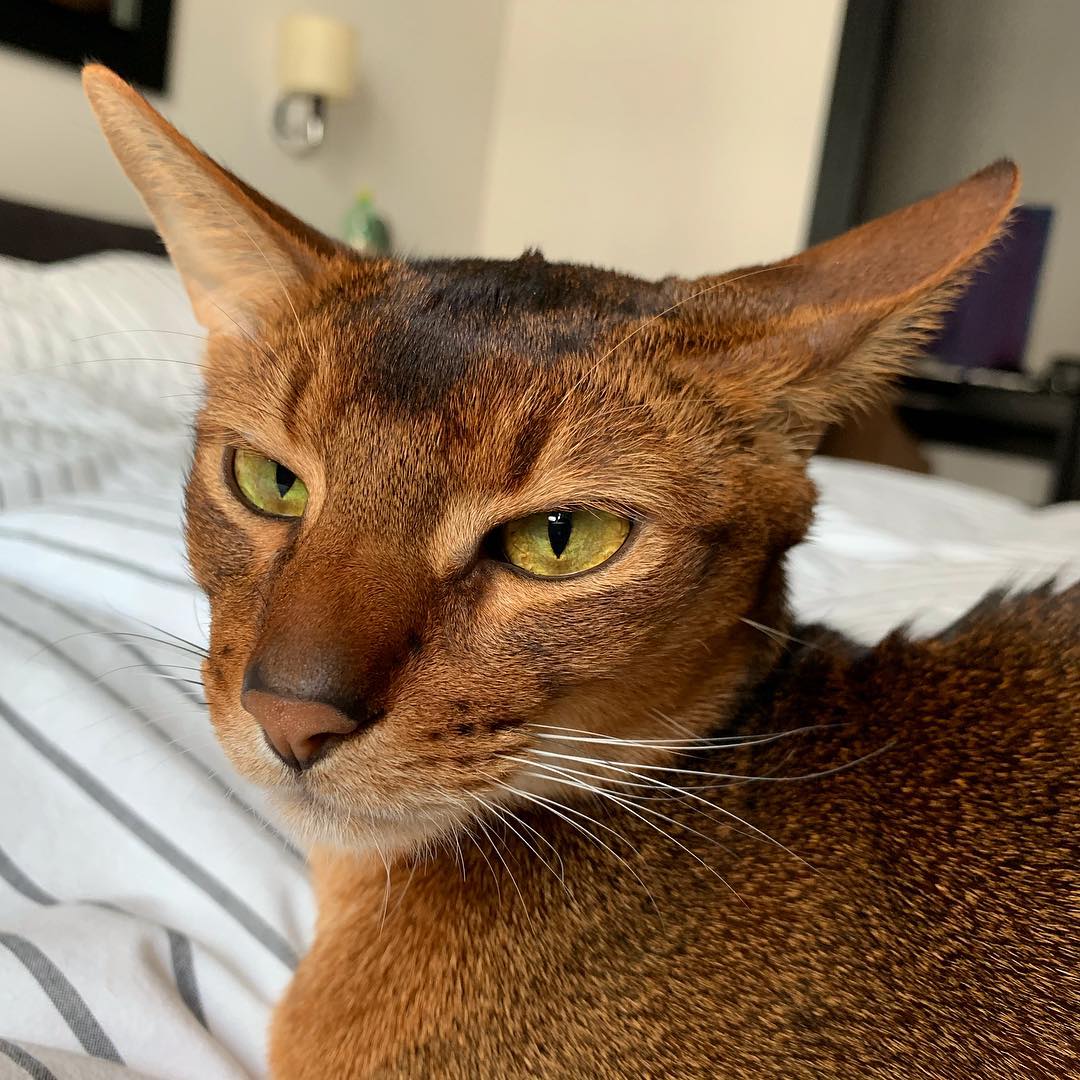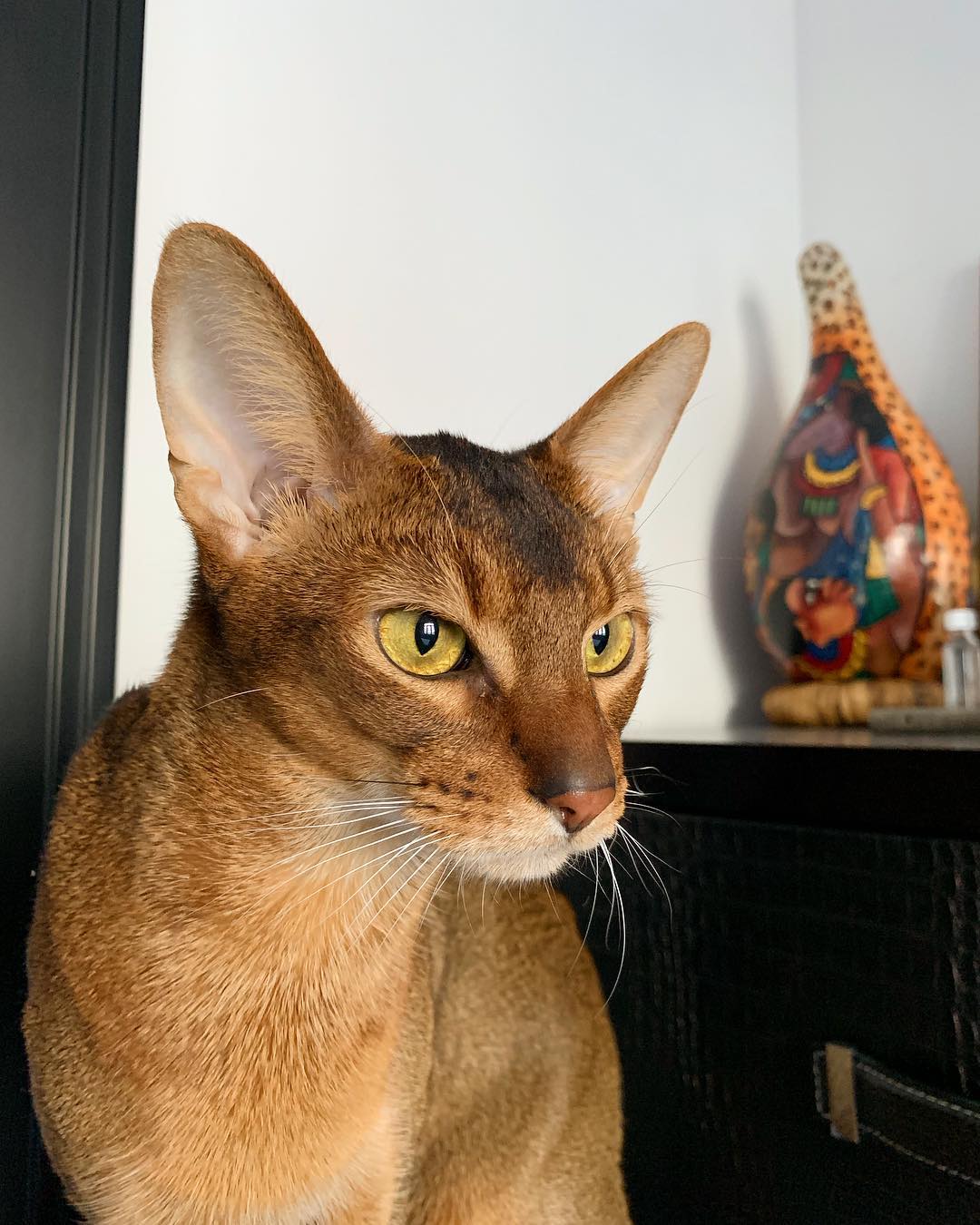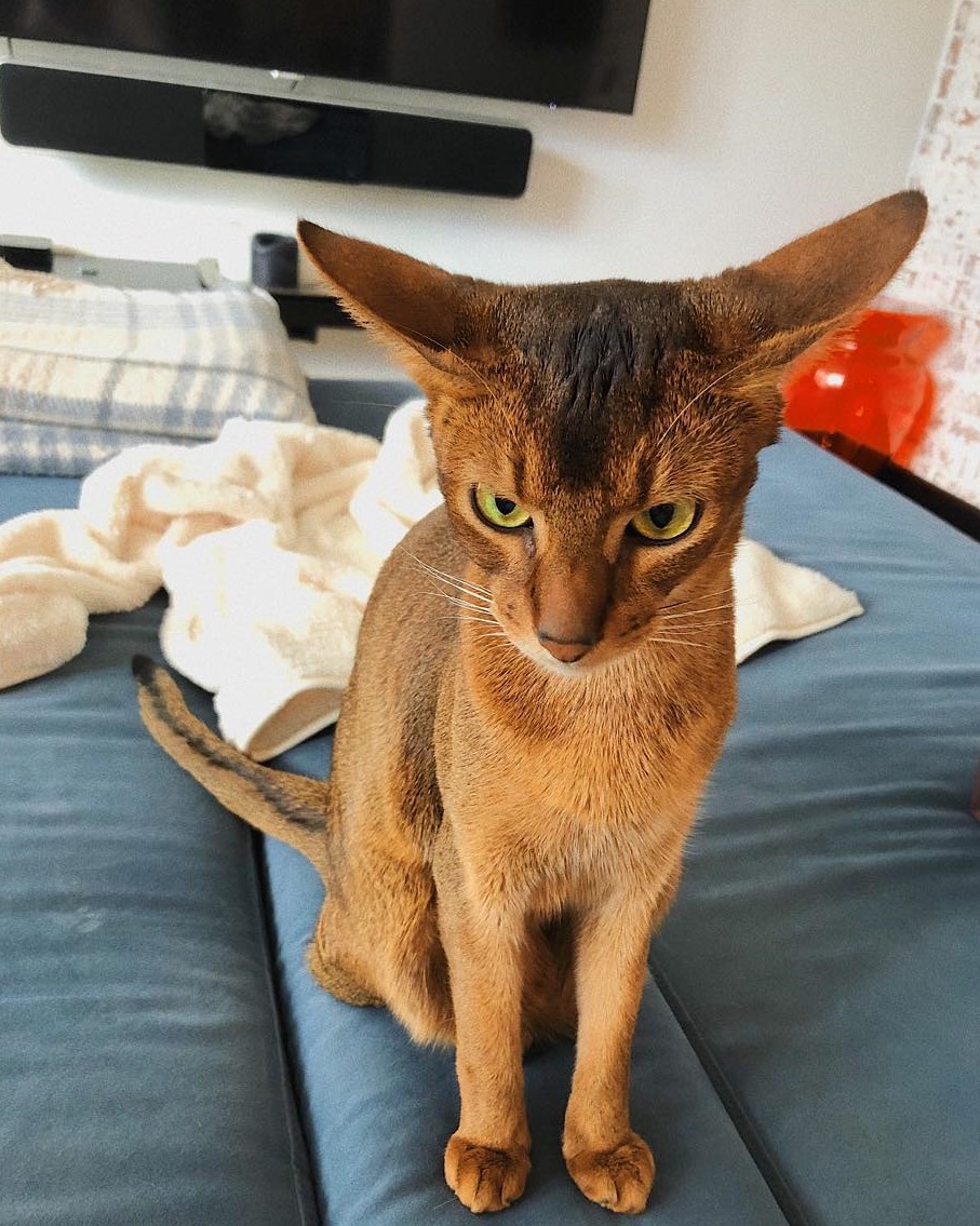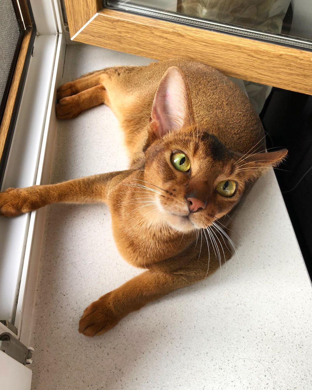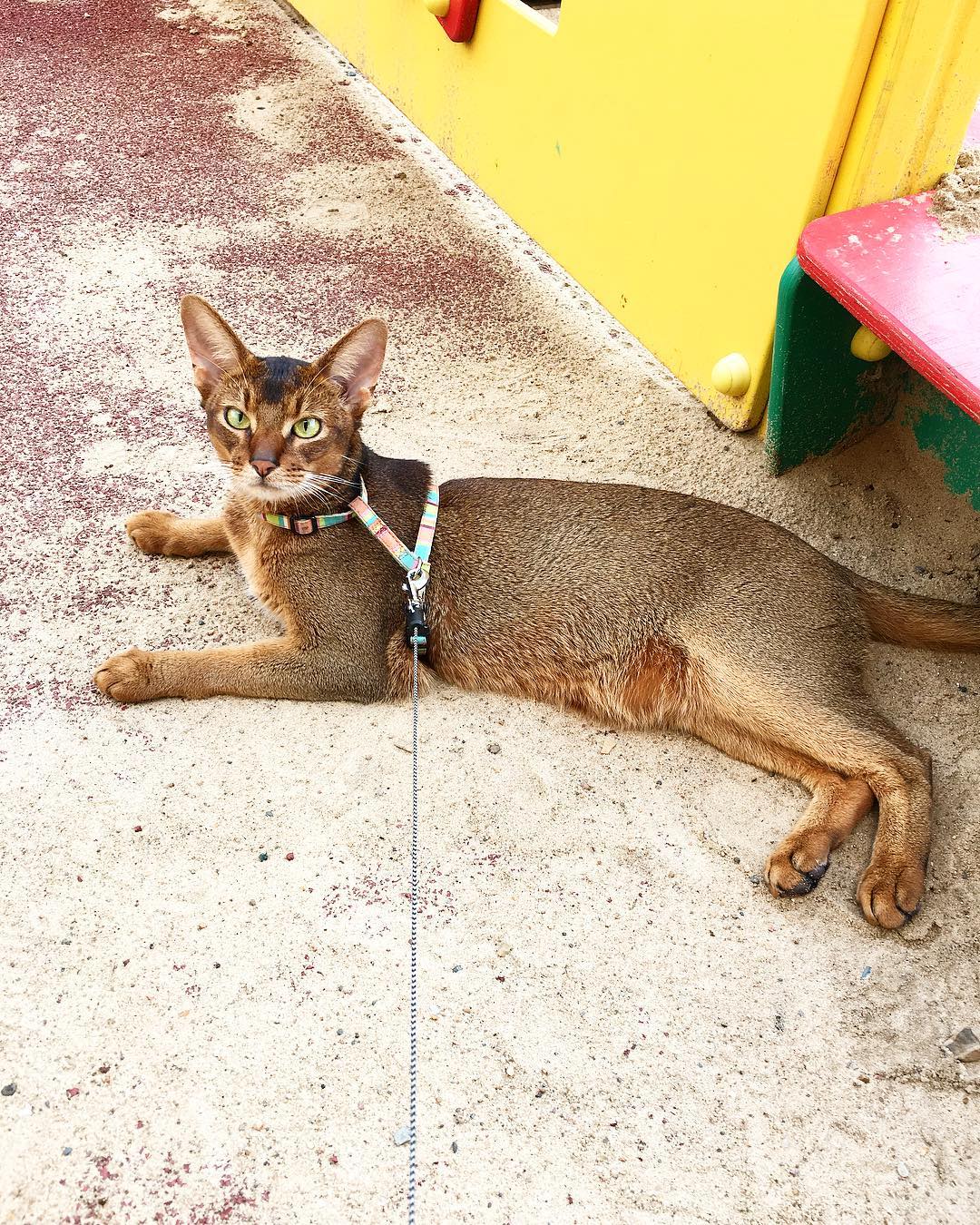 אביסיניאים הם תחליף נהדר לכלבים: הם אוהבים לטייל בחוץ, ובמזג אוויר חם, כמובן, וללקק את פניו של בעליהם האהוב. אמנם לא כל האבסיניאים כאלה, אבל סניה בהחלט כזו! ועם המבט המאיים הזה, היא תגן עליכם מפני בריונים!