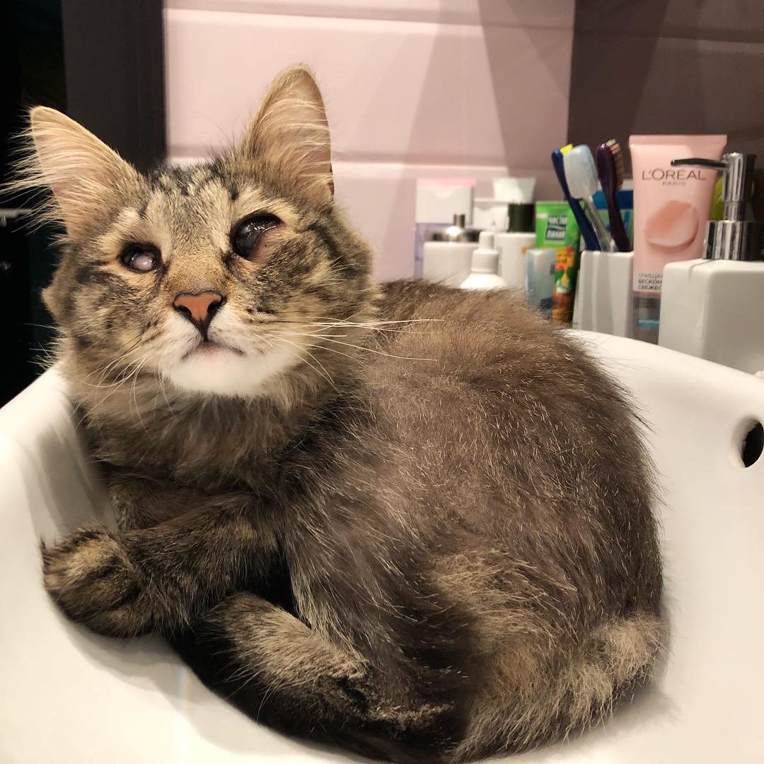 סאניה ובעליו לא גרים לבד. גושה הצטרף למשפחתם. החבשים היו זקוקים נואשות לחבר, אז הם החליטו להשיג חתול שני. באותה תקופה, חתלתול עיוור עם בעיות חיפש בית. אנשים המשיכו להחזיר אותו - הם לא הבינו כמה קשה יהיה לגדל חתול עיוור.