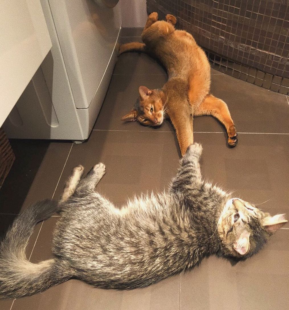 קשה מאוד לתפוס חתולים בתמונה קבוצתית. הם בהחלט חולקים חיבה זה לזה, אבל בעולם החתולים זה יותר מרוחק. פסיכולוג חתולים יעץ להם להמציא משחק לשחק יחד. והם מצאו תחביב - מחבואים! סאניה מסתתר בפינה מבודדת. בעליו אומר, "סאניה, סאניה, איפה את?" וגושה מבין שהוא צריך לחפש את חברו. הוא רץ ברחבי הדירה, משתמש בחוש הריח שלו כדי לנסות לאתר את החבשי. והוא מצליח לעתים קרובות!