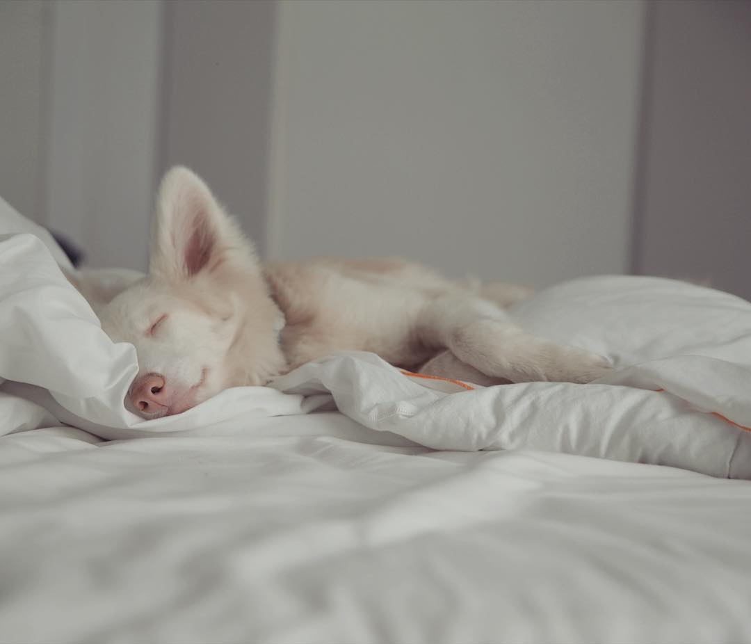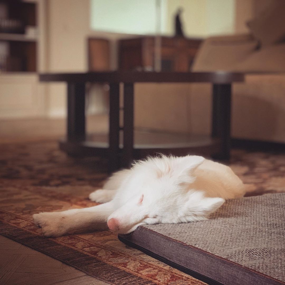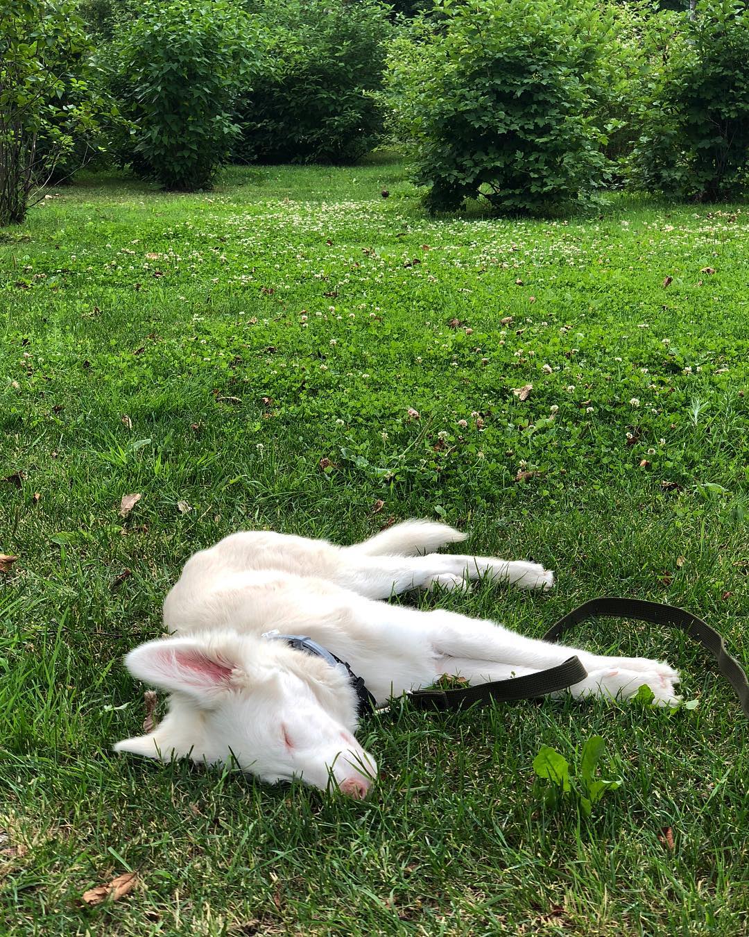 אחרי טיול עמוס עם בעליו, הכלב מעדיף לטעון את המצברים שלו ולנמנם קצר.
