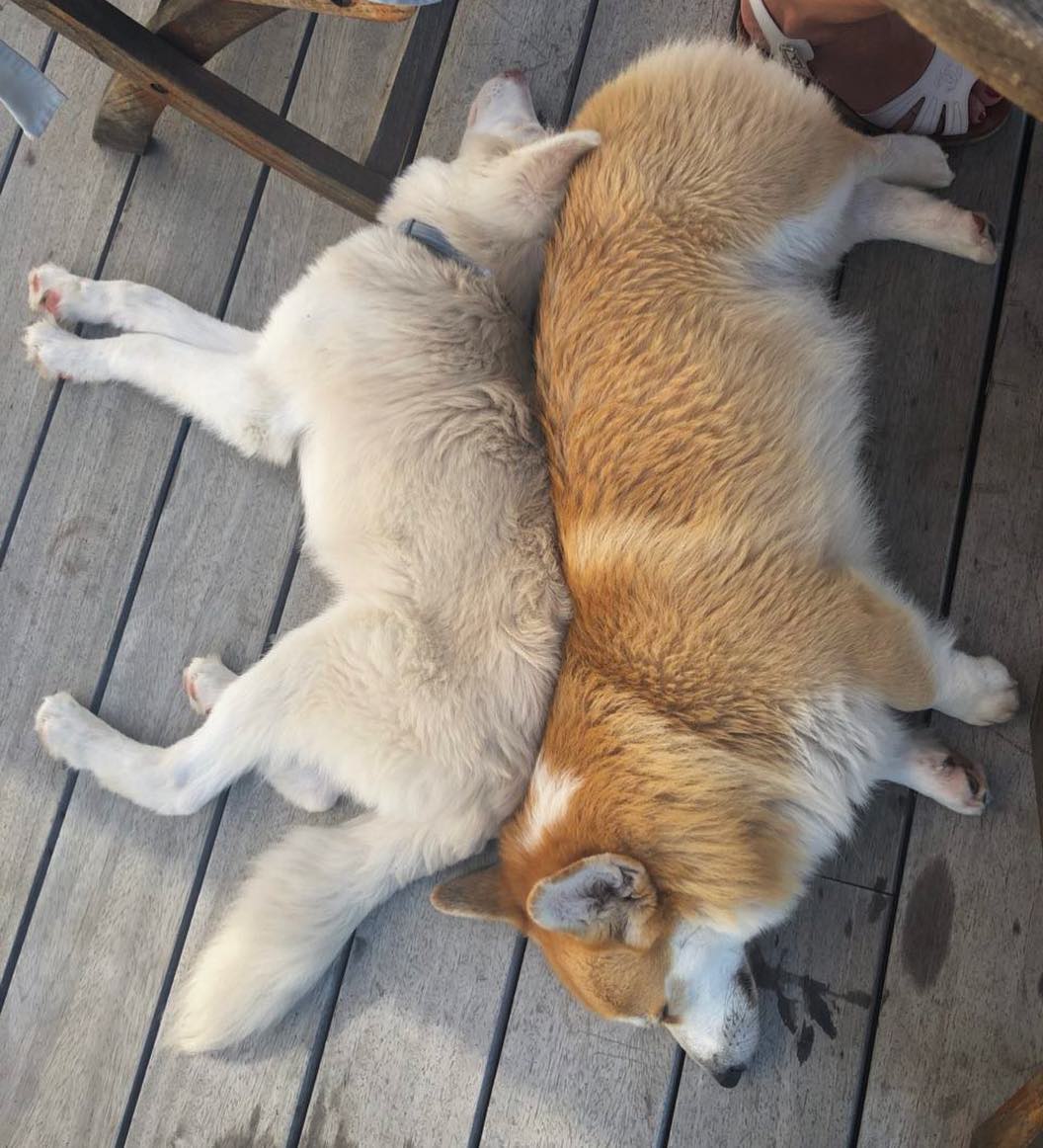 אוגוסט לא מסתדר טוב עם כלבים אחרים, אבל יש לו חבר הכי טוב, קורגי בשם צ'אבי.