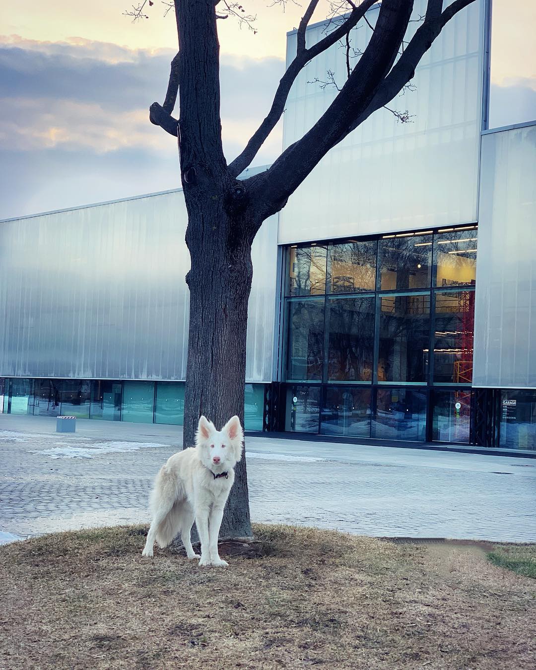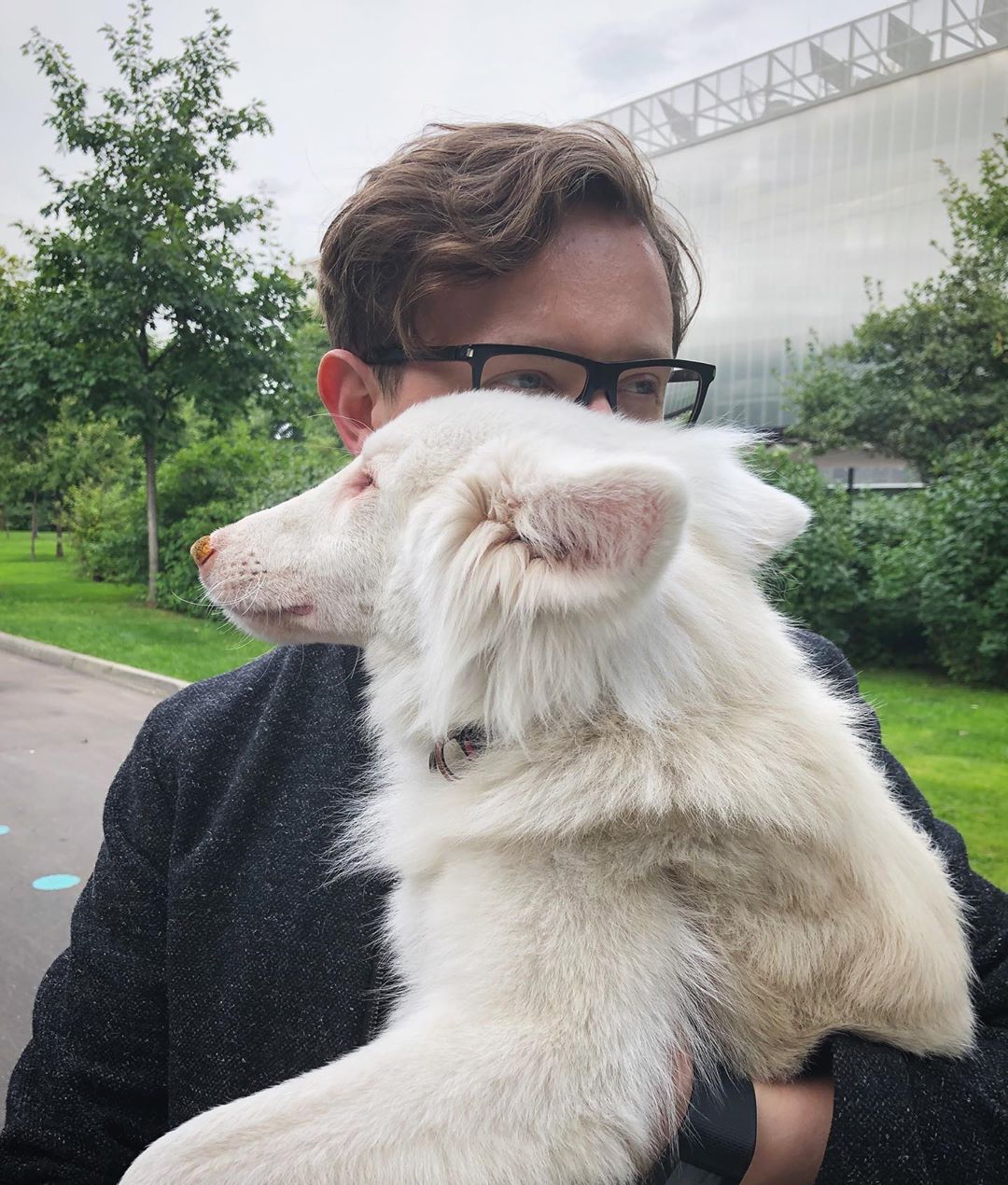 מקסים תמיד לוקח איתו את הכלב שלו. הם ביקרו במקומות רבים בבירה שמתירים כניסה לחיות מחמד.