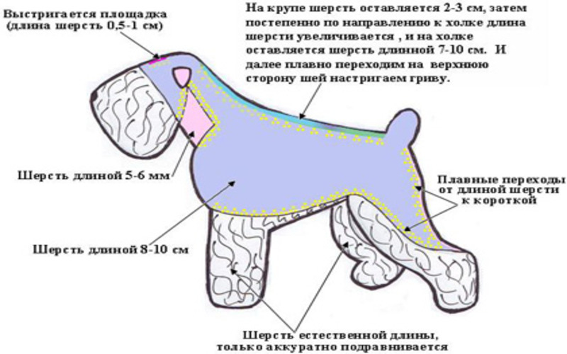 בעלים רבים תוהים איזה אורך פרווה להשאיר לכלב הטרייר הרוסי השחור שלהם. הכל תלוי בהעדפה אישית: חלק מעדיפים כלבים עם פרווה ארוכה יותר, בעוד שאחרים מעדיפים כלבים עם פרווה קצרה. אורך הפרווה המומלץ לפרווה קצרה הוא עד 1.5 ס"מ, ולפרווה ארוכה, 3 עד 6 ס"מ.