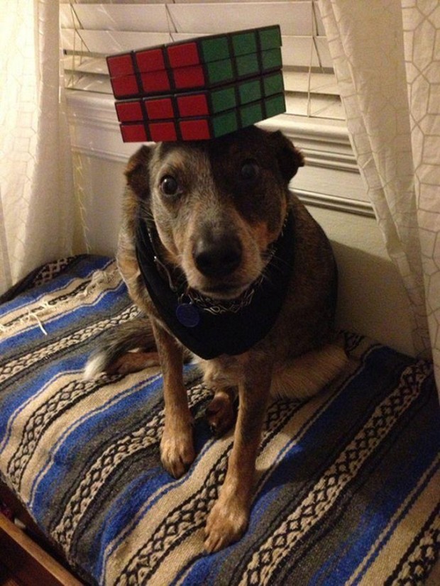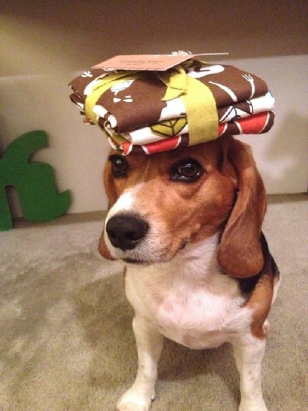 כלב עם נורה ענקית על הראש נראה מעניין, אבל מה לגבי עוגייה על האף? זה איזון אמיתי.