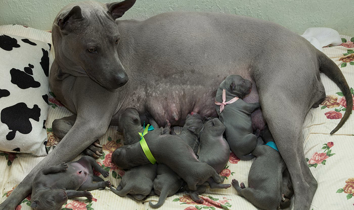הלידה חייבת להיות בפיקוח וטרינר. יש לנגב את האף והפה של הגורים שזה עתה נולדו במטלית נקייה כדי למנוע חנק. לאחר הלידה, האם תטפל בגורים שלה באופן עצמאי. האם הטרייה תאכיל את הגורים ותלקק אותם כדי לעורר את מעיהם.