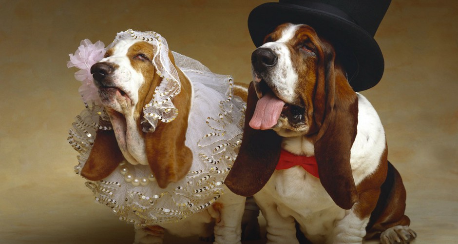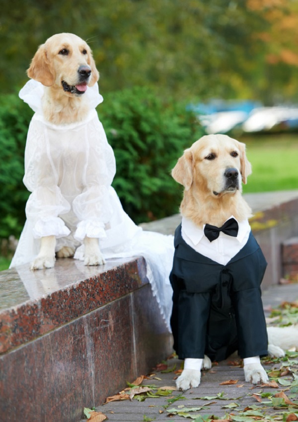 לקחת זוג זוגות נשואים טריים לטיול בחליפות זה מאתגר ביותר. כלבים לא מרגישים בנוח במיוחד בבגדים גדולים. אבל יופי דורש הקרבה.