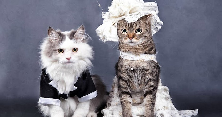 עם זאת, כלבים אינם היחידים שניתן להלביש לחתונות. חתולים נראים לא פחות חגיגיים ושובבים.