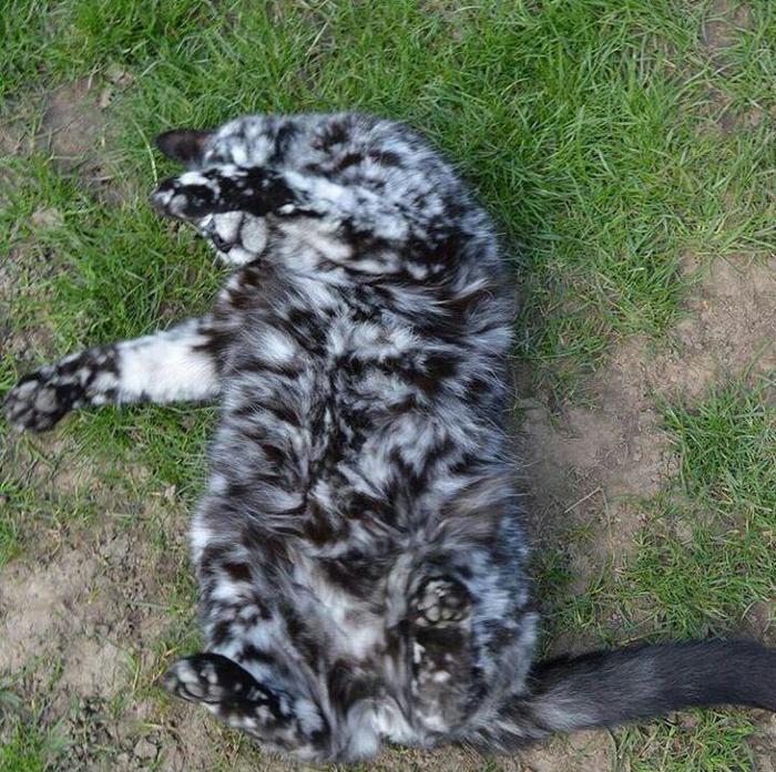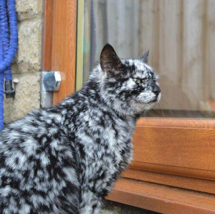 לחתול הזה היה צבע שחור רגיל לחלוטין אפילו בגיל חמש.