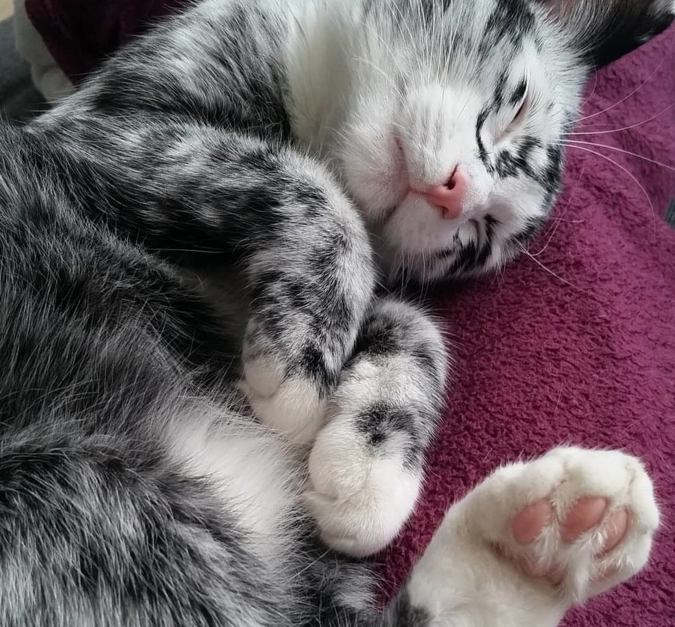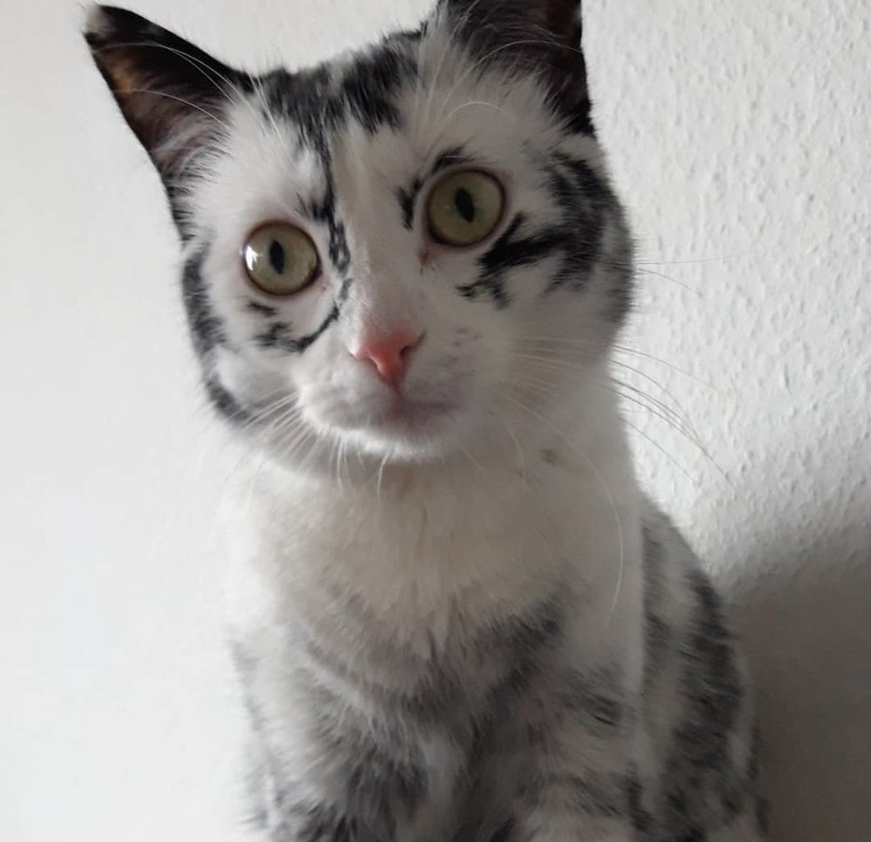 החתול הזה איבד פיגמנט מהאף והאוזניים שלו.