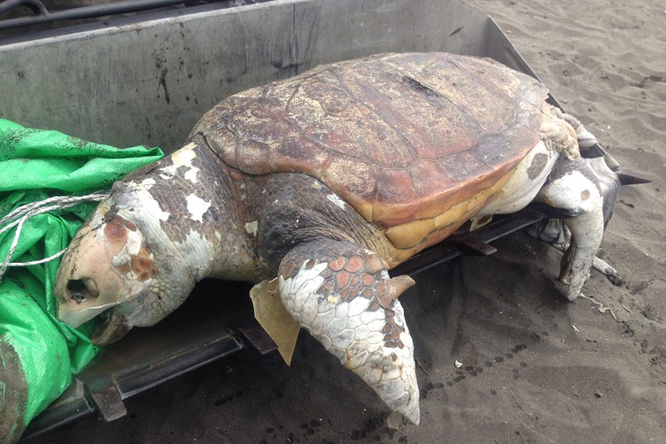 צב ים יוצא דופן עם כתמים לבנים.