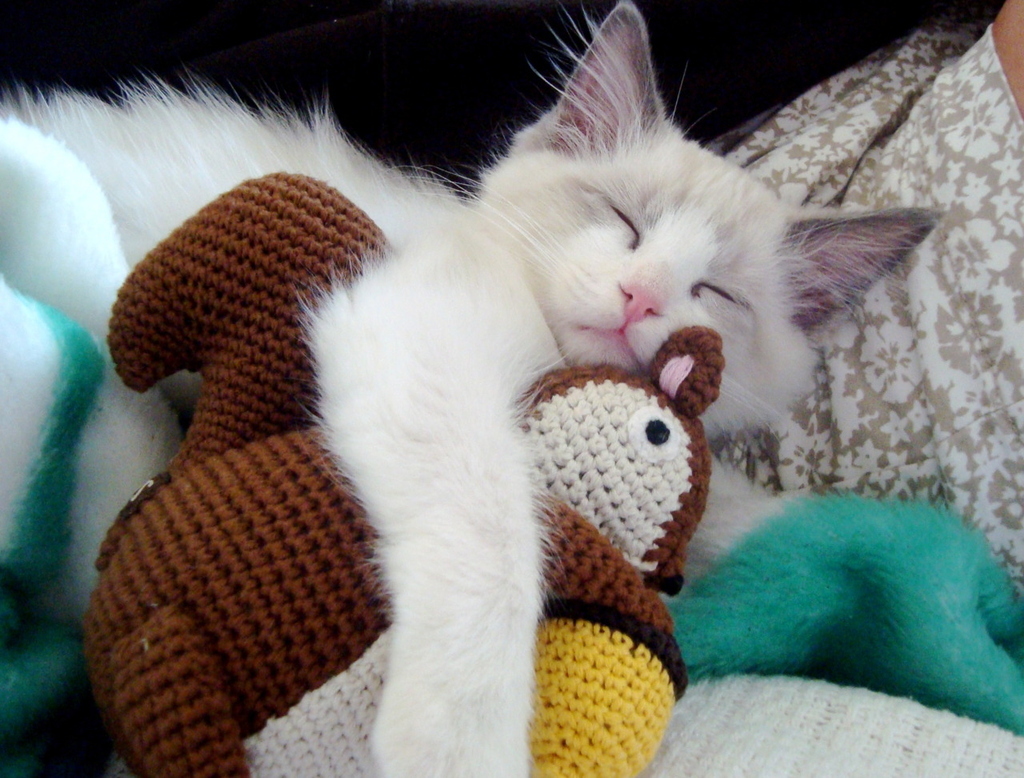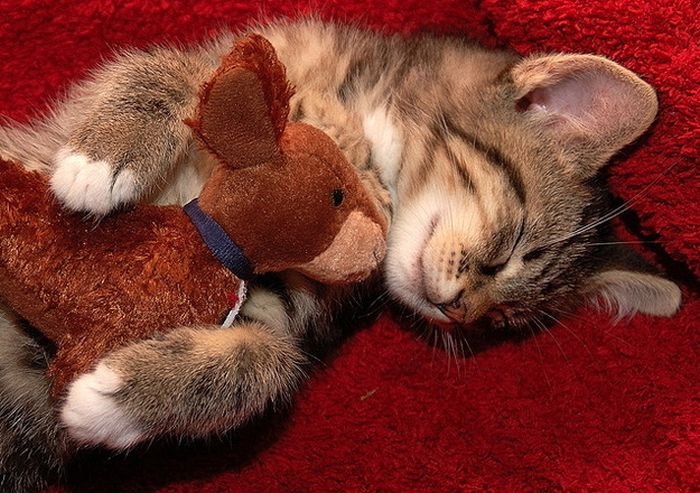 ילד ישן עם בובת פרווה הוא תענוג בלתי רצונית. אבל חיות שמחבקות בובות פרווה בזמן השינה הן לא פחות מקסימות.