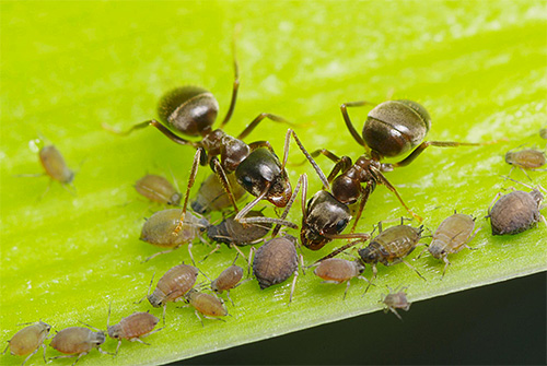 - נמלי גינה שחורות מגדלות כנימות על עלים וגבעולים של צמחים, מהם הן ניזונות.