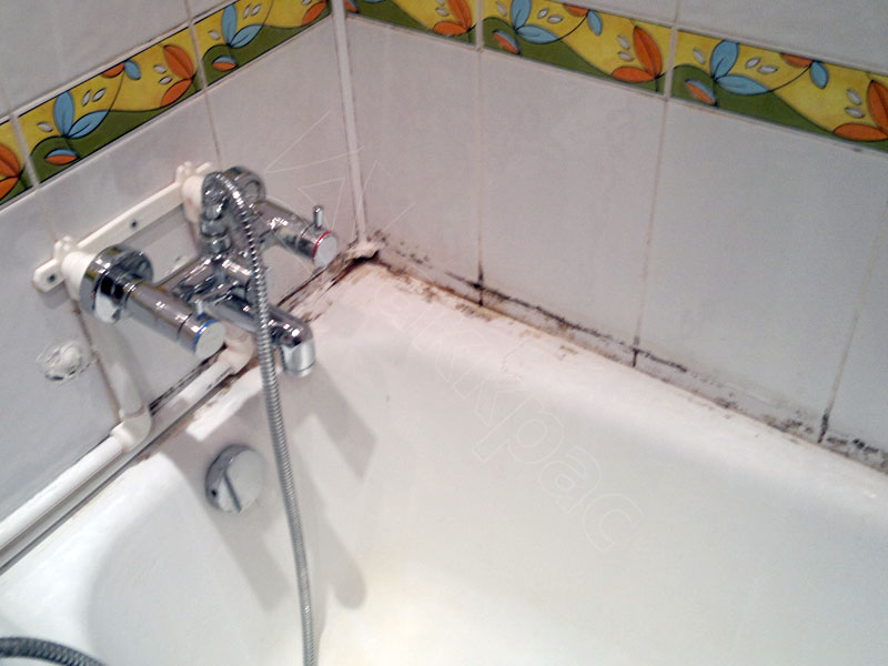 בחדרי אמבטיה, עובש משגשג ברובה שבין האריחים ובחיבורים שבין האמבטיה לקיר, אשר אטומים בחומר איטום. לא ניתן לשטוף שאריות שחורות אלה במים; נדרשת שיטה אחרת כדי להסירן. יש לגרד לחלוטין את חומר האיטום המזוהם, ולטפל באזור בקוטל פטריות. לאחר מכן, יש למרוח שוב את חומר האיטום. בחרו מוצר המכיל חומר חיטוי.