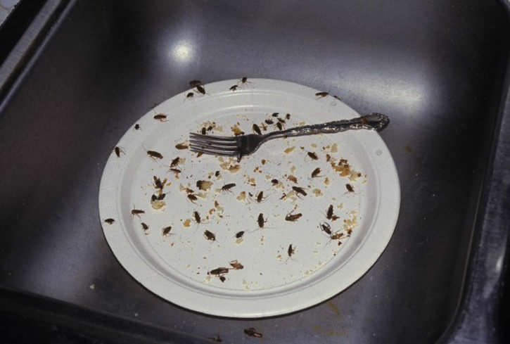 - הכינו מלכודת אכילה באמצעות כל מזון מפלסטיק (חלמון ביצה הוא אידיאלי) ואבקת קוטל חרקים. ערבבו את המרכיבים הללו וחלקו אותם לכדורים קטנים, שאותם ניתן לאחר מכן להניח ברחבי הדירה.