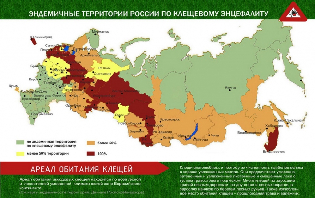 שני מינים אלה הם המעבירים העיקריים של מחלות מסוכנות כמו דלקת מוח נגיפית הנישאת על ידי קרציות, בורליוזיס (מחלת ליים) וקדחת דימומית. מחלת ליים מעקיצות קרציות צפויה להופיע לרוב באזור מוסקבה, מוסקבה ואזור קרסנודר. באזורי רוסטוב ווולגוגרד, כמו גם באזור הקווקז ברוסיה, קיים סיכון לקדחת דימומית. המצב עם התפשטות דלקת מוח נגיפית אינו טוב יותר. אזורים אלה כוללים את המחוז הפדרלי הצפון-מערבי של הפדרציה הרוסית, קרליה, אזור הוולגה, אזורים רבים במחוז הפדרלי המרכזי ואת כל המזרח הרחוק. בחלק המזרחי ביותר של המדינה, ולדיווסטוק תופסת מקום מוביל.