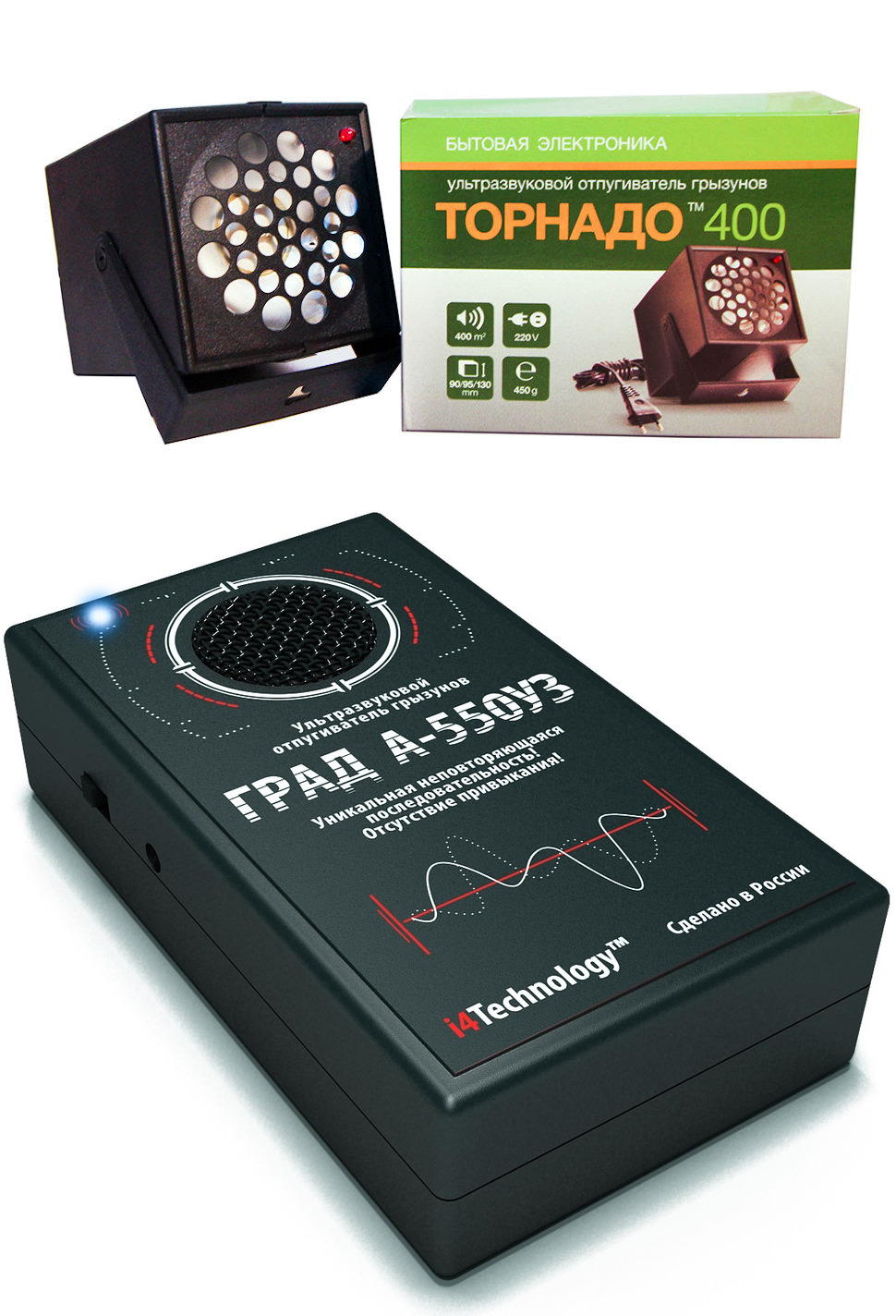 ישנם שני סוגים של דוחי תרנגולות אולטרסאונד: ביתיים ותעשייתיים. הראשון מופעל על ידי סוללה ומתאים לשימוש בלול תרנגולות קטן, מכיוון שהשפעתו מוגבלת לשטח קטן. יתר על כן, הוא נשחק במהירות כאשר הסוללה שלו נגמרת. דוחי תרנגולות תעשייתיים מופעלים חשמלית, מותקנים בלול גדול או באסם, וניתנים להפעלה ללא התערבות אנושית. המותגים הידועים ביותר של מכשירי אולטרסאונד הם Grad, Tornado ו-Typhoon.