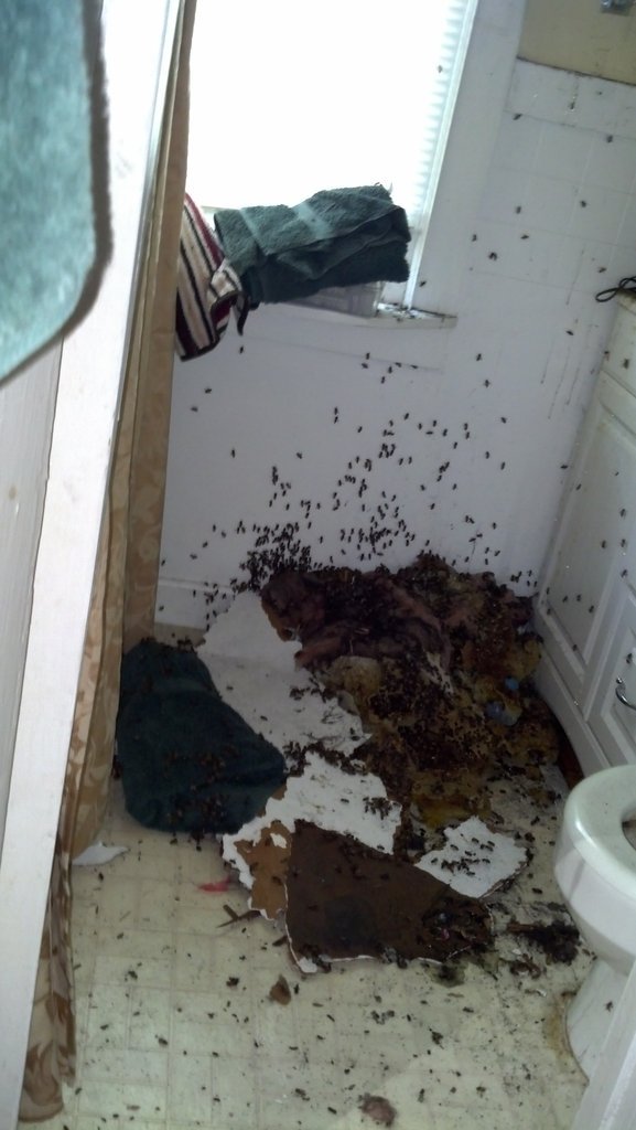 אם מושבת דבורים התמקמה בין קירות בית או מקום אחר שקשה להגיע אליו, עזרה מקצועית חיונית; ייתכן שיידרשו פועלי בניין. בכל מקרה, אם מתגלה פתח, אין לאטום אותו. פעולה זו תוביל לתוקפנות מסיבית מצד הדבורים, שתאלץ אותן לחפש יציאה חדשה. הדבר עלול לגרום להופעת החרקים בתוך הבית עצמו. אם הפער גדול מספיק לגישה, עשן יכול לסייע בחילוץ המושבה. לאחר חיטוי והוצאת הנחיל לשק או לקופסה מתאימה, יש למסור אותו לבעלים החדש. לאחר מכן, יש להתחיל בניקוי יסודי של מושבת הדבורים.