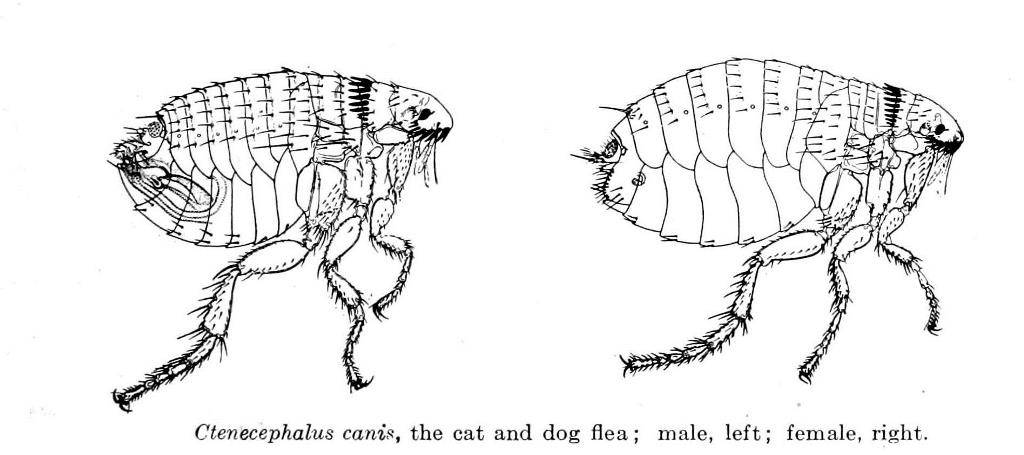 פרעושי כלבים נושאים תולעים שטוחות, ביצי תולעי מלפפון, קדחת מרסיי וטריפנוזומים.