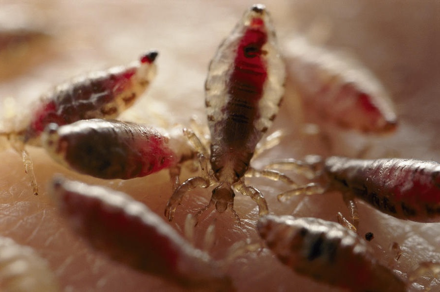 - גירוד מעקיצות חרקים ותנועה. הם נעים באמצעות טפרים שמגרים את העור, והנשיכות הכואבות מלוות בשחרור חלבון זר לבני אדם, מה שגורם לתגובה אלרגית נוספת.