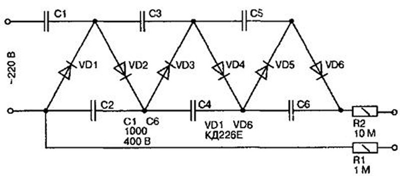 - הרכיבו את המכפיל לפי התרשים, תוך הקפדה על עקרון חיבור הדיודות והקבלים.