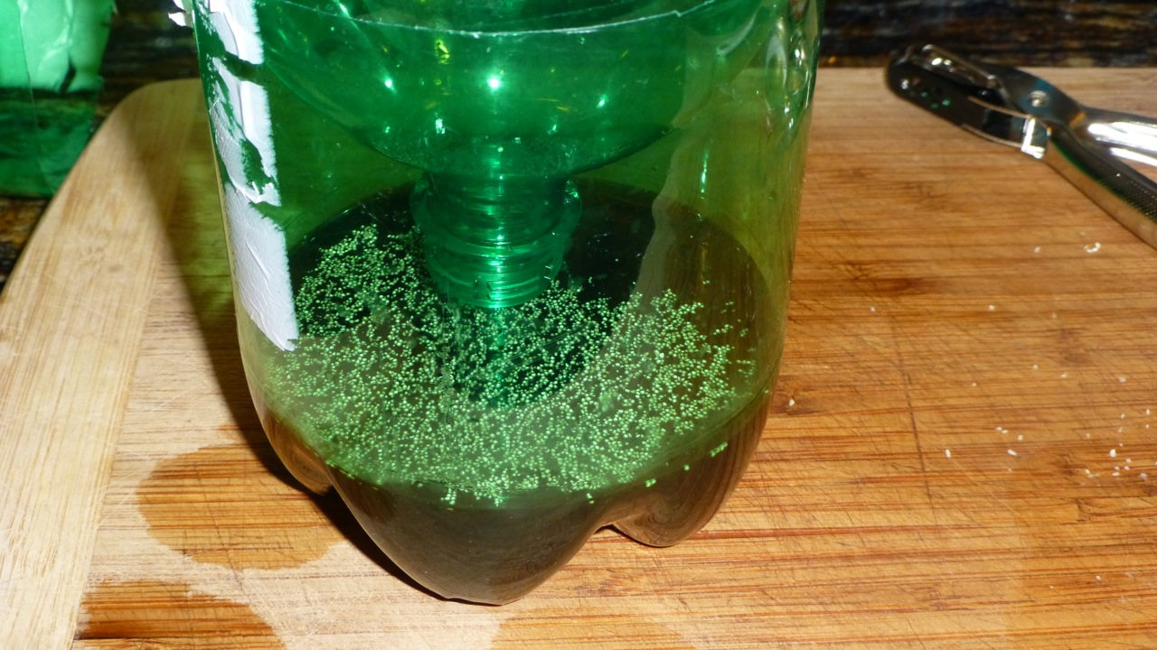 - אנו פותחים את המכסה מהמשפך שנוצר בחלקו העליון ומכניסים אותו בחוזקה לתחתית הבקבוק.