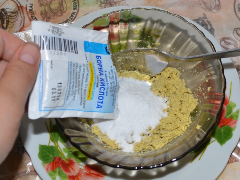 - גלגלו כדורים קטנים מחומצת בור וחלמונים מעוכים; ערבבו אבקת סוכר עם אבקת חומצת בור ביחס של 1:1.