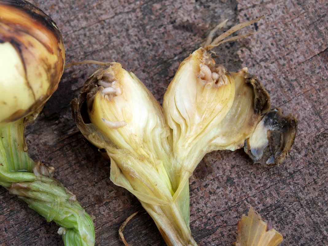 מספר מזיקי הבצל עולה במהירות, מה שאומר שגם הנזק עולה. אלו שמסתמכים על זבובים, שאינם ניזונים מבצל אלא רק מטילים ביצים, טועים. המפתח הוא לשלוט בזחלים, אשר טורפים את היבול. הם מוצצים את שרף הצמחים הצעירים וניזונים מבשרם העסיסי. כתוצאה מכך, קצוות הבצל מצהיבים, העלים והנוצות נופלים, ולפעמים מתכרבלים לספירלה. המזיק תוקף צמחים ממשפחת החבצלות, כמו גם גידולים הגדלים תחת פלסטיק.